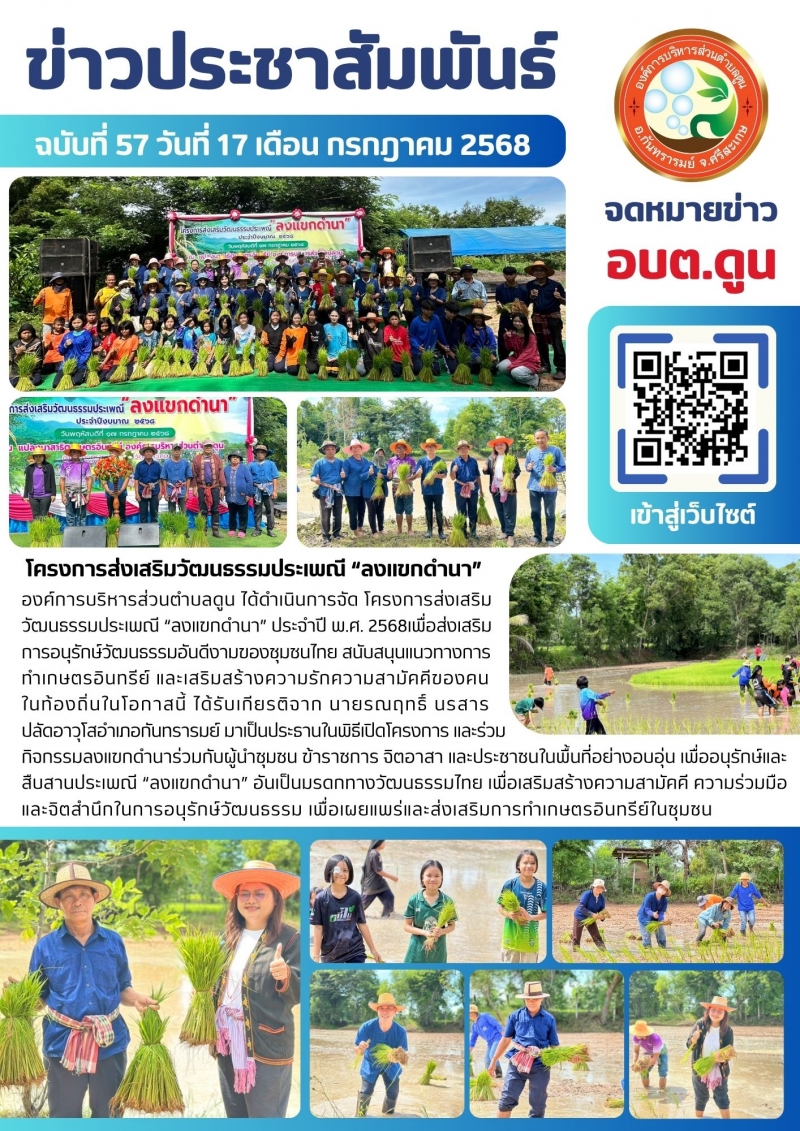 องค์การบริหารส่วนตำบลดูนร่วมกันทำนาปลูกต้นข้าวเพื่อน้อมนำปรัชญาเศรษฐกิจพอเพียง