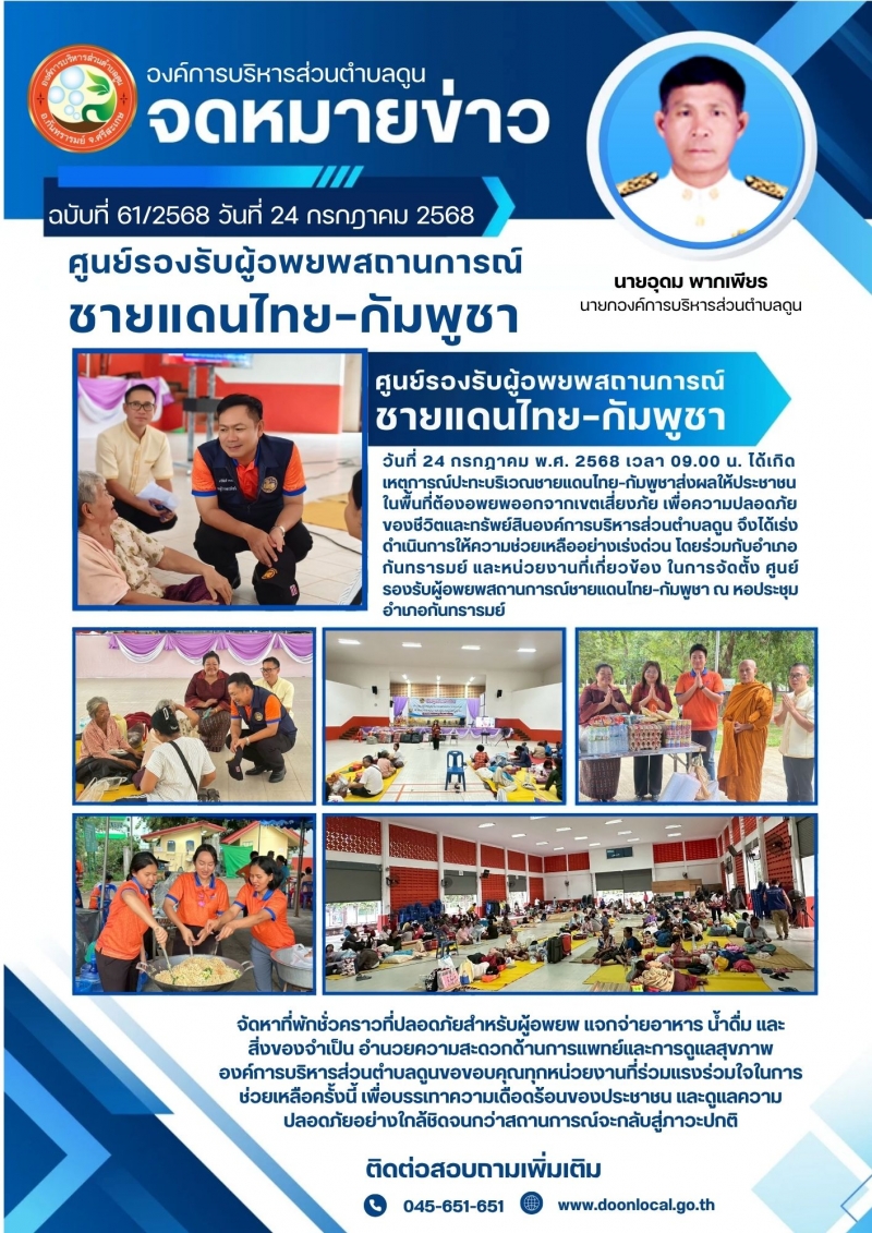 องค์การบริหารส่วนตำบลดูน เร่งช่วยเหลือผู้อพยพ จากเหตุปะทะชายแดนไทย–กัมพูชา