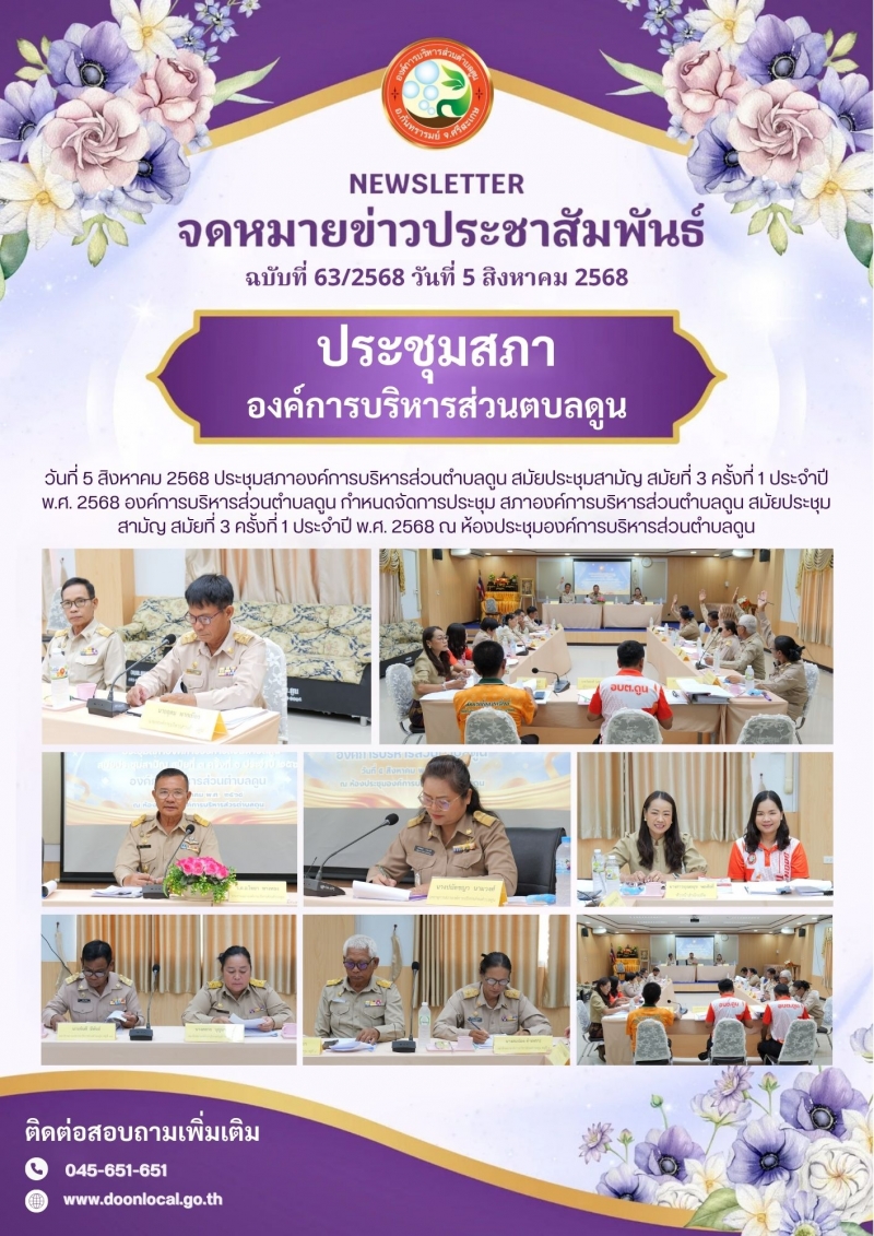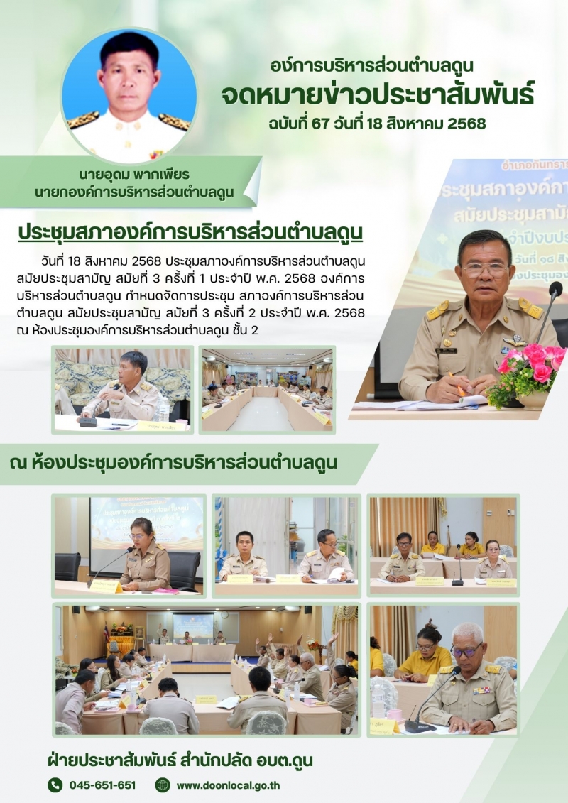 ประชาสัมพันธ์การประชุมสภาองค์การบริหารส่วนตำบลดูน สมัยประชุมสามัญ สมัยที่ 3 ครั้งที่ 2 ประจำปี พ.ศ. 2568 องค์การบริหารส่วนตำบลดูน